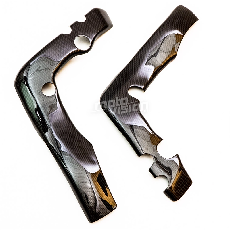 Motorcycle protection with an outer layer made of genuine gloss twill carbon (only available in this finish). Supplied without screws or any other mounting hardware.