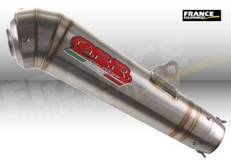 GPR's Powercone Evo exhausts are directly from the races with a super sporty look and cone shape. They are made of hand-brushed 304 stainless steel, with visible TIG welds on the cone. Their cone shape has a diameter of 70MM x 110MM.This kit includes the specific lnik pipe or half-manifold with specific appropriate brackets and accessories. This allows for installation without any structural modifications.This is an original GPR product, developed after GPR's experience in the World Championship. It offers an innovative design, improved performance, weight savings and a full-bodied sound.Weight : 1,95 Kg
