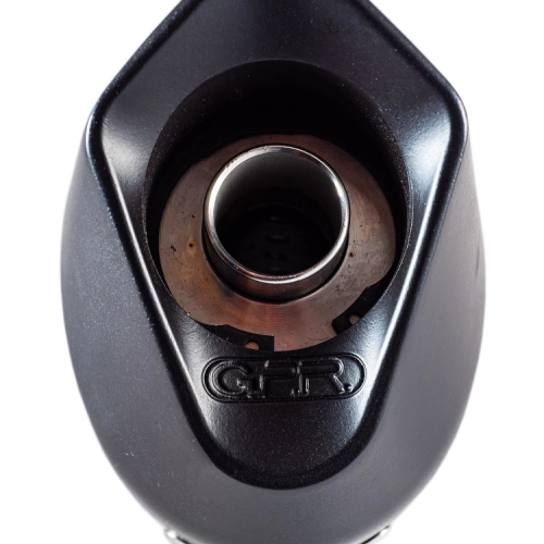 GPR's Furore Nero silencer has a black aluminum body, with avional caps made through CNC machining. It has a ceramic finish that withstands high temperatures, with an elliptical shape that measures 90mm x120mm.This bolt-on silencer does not need a fitting. To install, mount directly on the original manifold using the supplied bolts and relative bracket kit.This is an original GPR product, developed after GPR's experience in the World Championship. It offers an innovative design, improved performance, weight savings and a full-bodied sound.Weight : 1,84 Kg