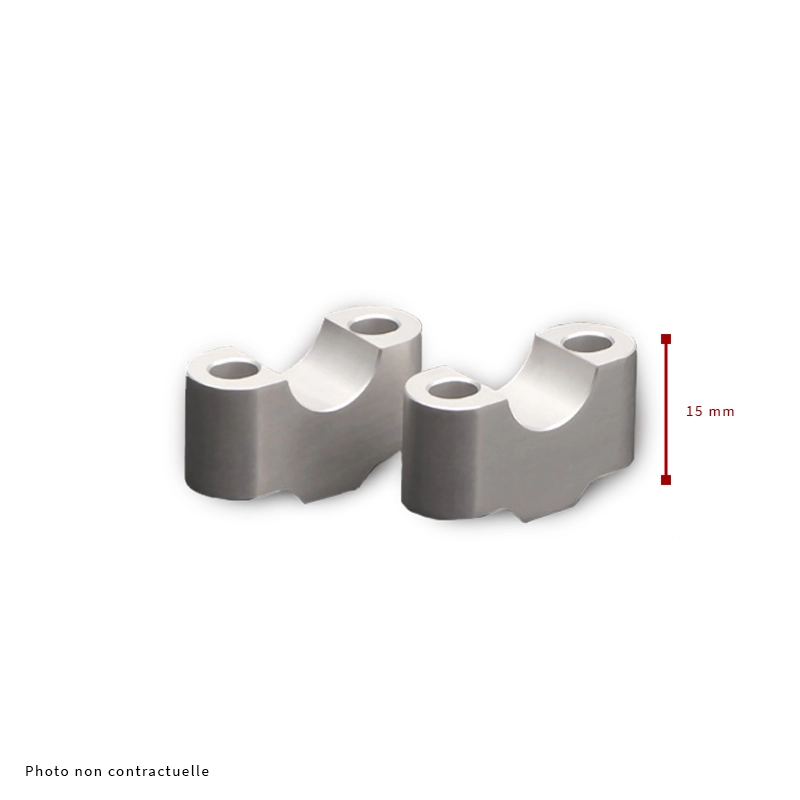 The risers only allow the position of the handlebars to be shifted upwards. This gives the driver a more upright and relaxed driving position. The universal design allows the risers to be mounted on all handlebar bridges.
