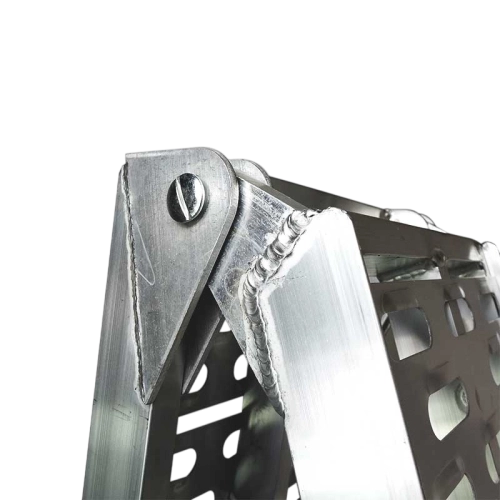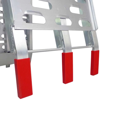 Moto-Vision offers you these foldable aluminium ramps, which are both strong as they are able to support up to 280 kg, but also very light as one ramp weighs less than 8 kg, to ensure good practicality. The motorbike and quad bike loading ramp has other advantages in use. First of all, its arc shape offers better clearance and its perforated surface ensures better traction. In order to keep your motorbike tyres properly on the ramp, the product is equipped with raised side rails and is finished with plastic end caps so that it has a better grip on the trailer and does not slip.