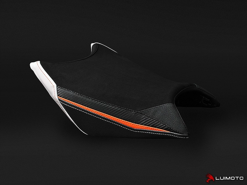 High quality Luimoto Seat cover Couvre selle pour pilote KTM 250 390 Duke 15-16 made in Canada. The brand designs products with a superb finish: detailed embroidery, navy vinyl, carbon style fabric or high quality suede leather... The design and colours are customised to match the look of your bike.