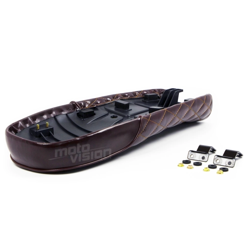 Transform the look of your bike by installing a saddle with a classic Café Racer profile. Comfortable and aesthetically pleasing, this imitation leather product is ideal when replacing the original saddle.
