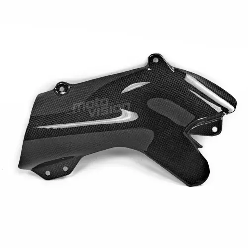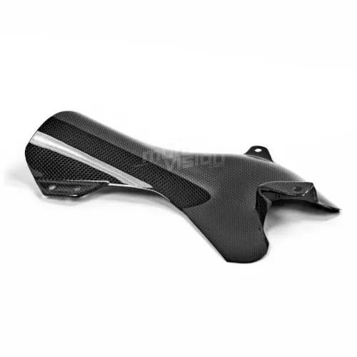 Carbon Heat shield cover Kawasaki ZX10R 2006 - 2007, delivered without screws or other fixings. The holes are already drilled on the carbon motorbike fairings. The parts are available in glossy or matt varnish.