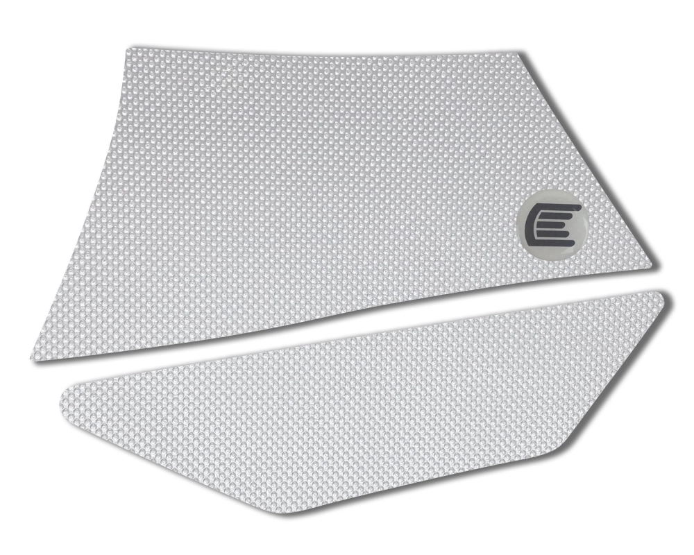 Adhesive and non-slip motorbike tank grip from the Evo range by Eazi-grip, pre-cut specifically for KTM 1090/1190/1290 ADVENTURE 2013-. The product is designed to give you better control of your motorbike when accelerating or braking, while reducing fatigue.Sold in pairs onlyColour: clear. Grips also available in black.PRO range: Grip made up of small hemispherical domes offering a smoother surface for greater freedom of movement and less wear than the EVO range.The advantages of Eazi-Grip motorbike tank gripsEvo avec grossissement image-1024x685Working closely with feedback from professional riders, the Eazi grip tank grip has evolved to the stage where it is now a first choice product in the paddock.Launched in 2011, it consists of domes that offer high levels of grip. Today the brand offers two main ranges. EVO tank grips: These grips have a textured surface that offers both excellent grip and exceptional sensations for the rider. PRO tank grips: The grips are designed to allow greater freedom of movement while offering high levels of grip when required, particularly during heavy braking.Why install motorbike tank grips?This simple, effective system helps the rider to remain stable when leaning on the bike for long periods in corners or when braking hard.By gripping the bike with their legs, riders tire much less, which means they can handle their bikes better during sessions on the track, whether as amateurs or in competition.The tank grip can be stuck to any surface (rough or painted, metal or plastic), plus it's completely transparent (for the transparent version) so the paintwork is 100% visible.Delivered pre-cut (specific to each motorbike model). Each model is available in transparent or black.Find out more about the Eazi-grip range of protectionsEazi-Grip Racing Products, designs, manufactures and distributes a range of motorbike performance and protection products worldwide. Eazi-Grip? is now recognised as Europe's leading brand of motorbike tank protection grips and are approved by professional teams in British Superbikes, World Superbikes, Australian Superbikes, MotoAmerica, Moto2 and Moto3.But Eazi-grip isn't just known for its tank grips. Silicone hose kits and dashboard screen protectors are also developed and approved by the world's leading racing teams. The brand currently has over 100 motorbike models and is always working hard to improve and expand its product range to satisfy as many motorcyclists as possible.
