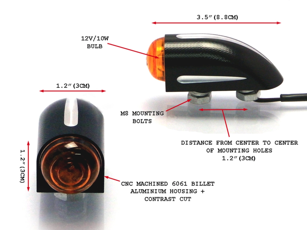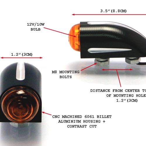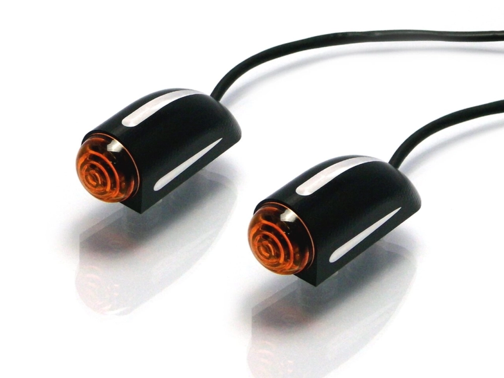 BLACK + CONTRAST CUT BILLET ALUMINIUM FLUSH MOUNT TURN SIGNALS / INDICATORS - BULB TYPE