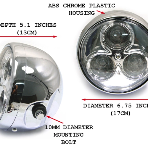 6 3/4" Stunning Chrome Plastic 3 Eye LED Headlight