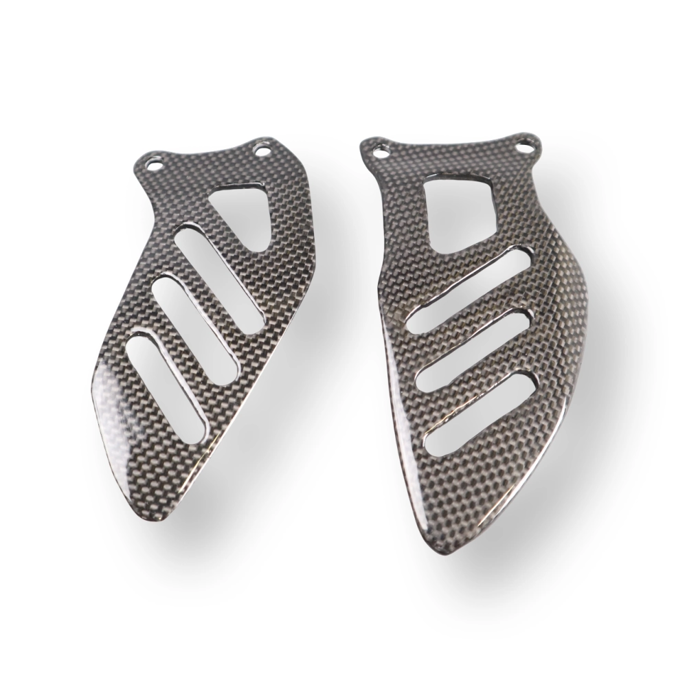 Carbon Heel Plates Suzuki GSXR 600 750 2006-2010 1000 05-06, delivered without screws or other fixings. The holes are already drilled on the carbon motorbike fairings. The parts are available in glossy or matt varnish.