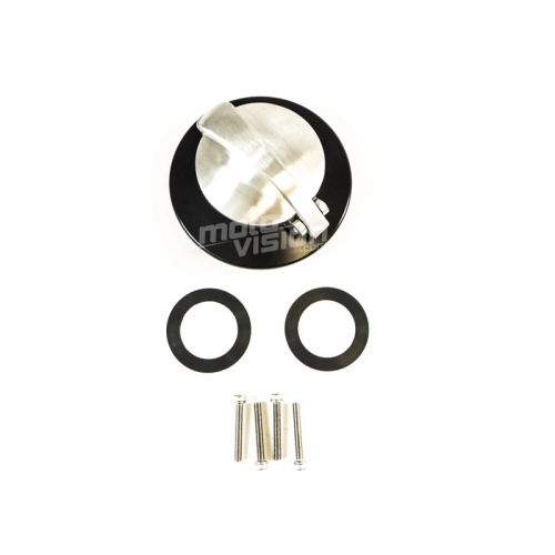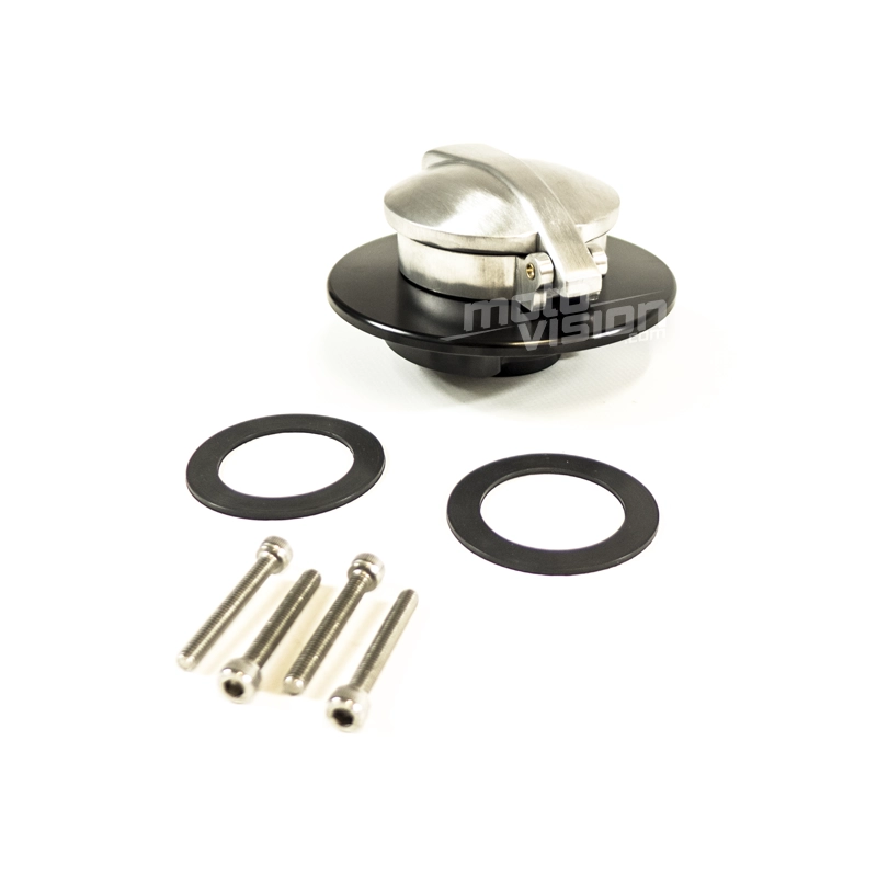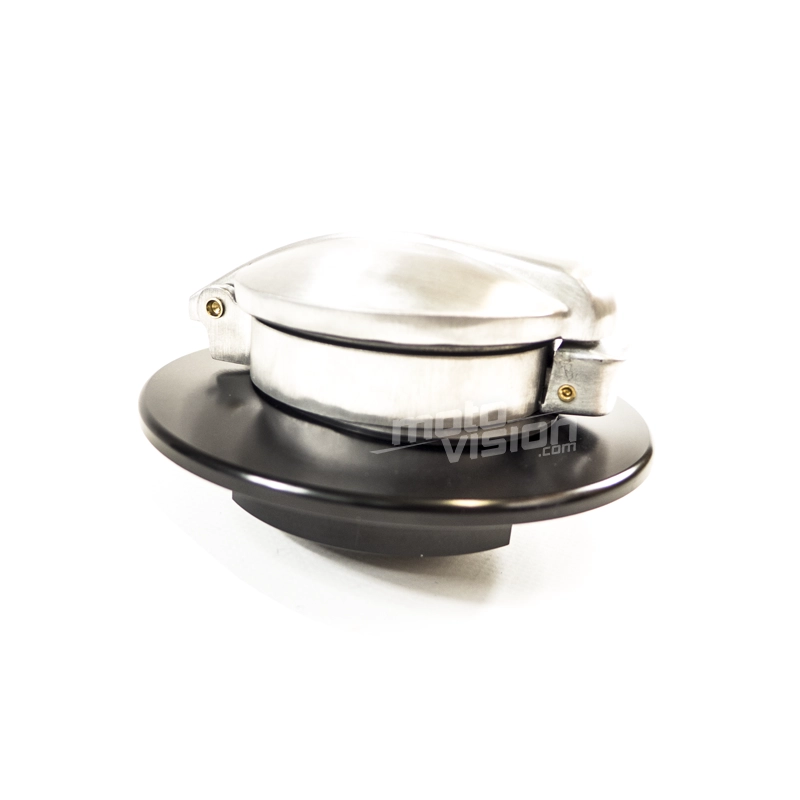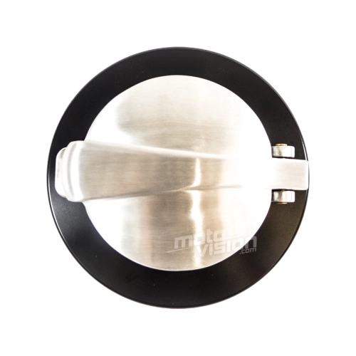 Cafe racer fuel cap for Ducati Scrambler. Black and mat silver.