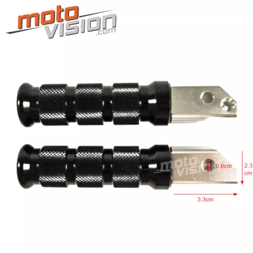 Thanks to their compact and precise design, they easily fit the fixings provided on certain Honda models, with a base measuring 3.3 cm in length, 2.3 cm in height and a fixing diameter of 0.6 cm. Installation is quick and requires no major modification, providing a simple and effective solution for replacing or upgrading your original footrests. Please check compatibility with your motorbike by comparing measurements directly on your vehicle.