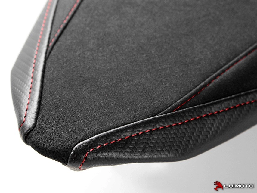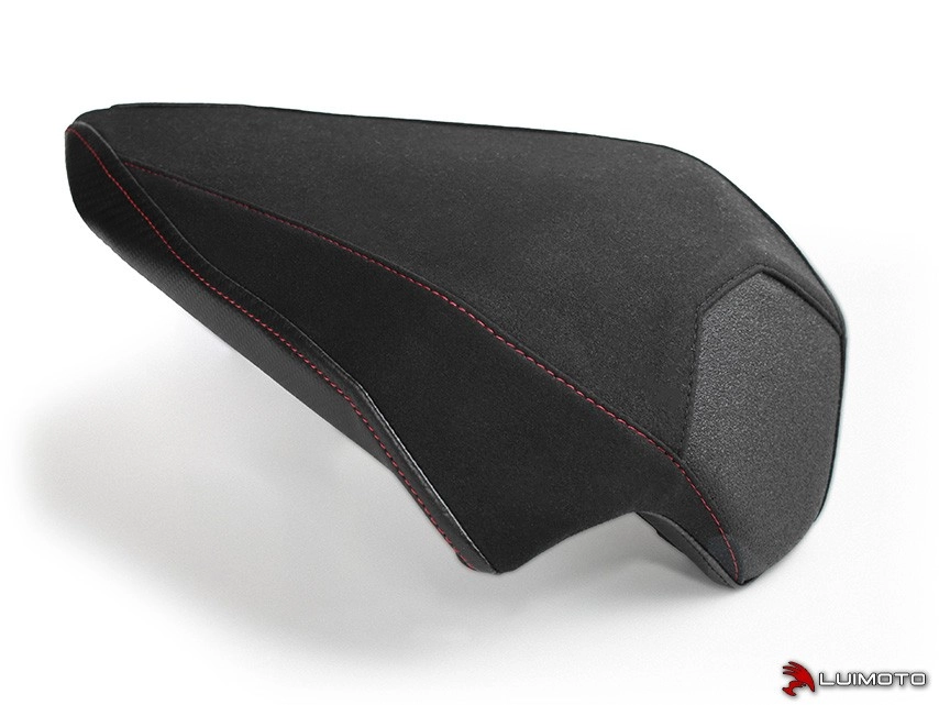 High quality Luimoto Seat cover Couvre selle Corsa pour passager Ducati Panigale V4 2018 made in Canada. The brand designs products with a superb finish: detailed embroidery, navy vinyl, carbon style fabric or high quality suede leather... The design and colours are customised to match the look of your bike.