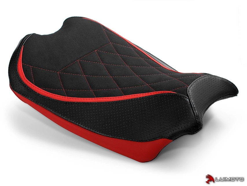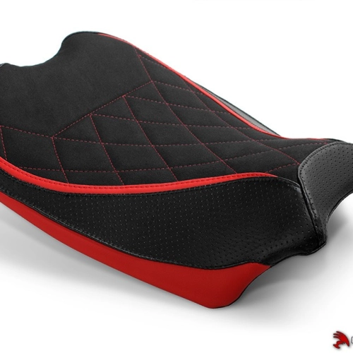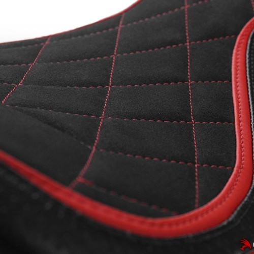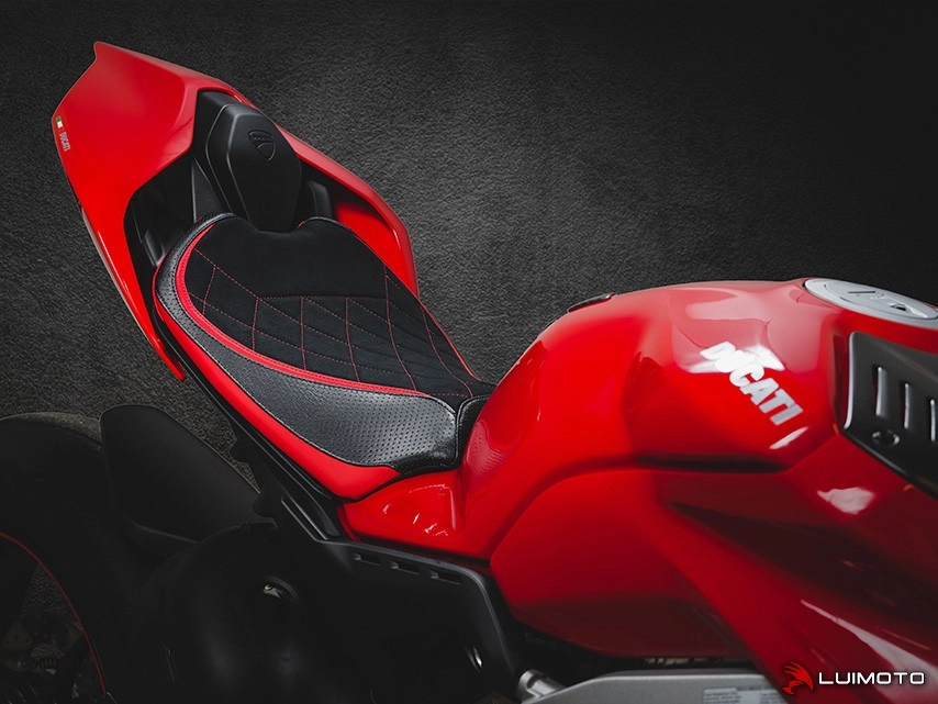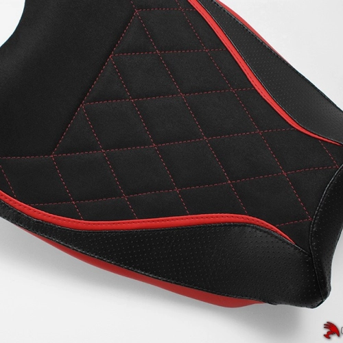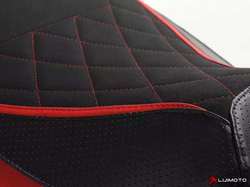 High quality Luimoto Seat cover Couvre selle Diamond Sport pour pilote Ducati Panigale V4 2018 made in Canada. The brand designs products with a superb finish: detailed embroidery, navy vinyl, carbon style fabric or high quality suede leather... The design and colours are customised to match the look of your bike.