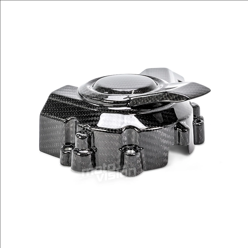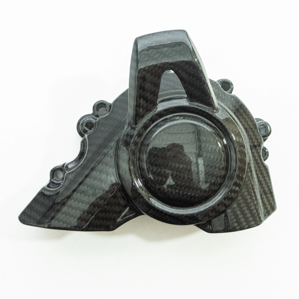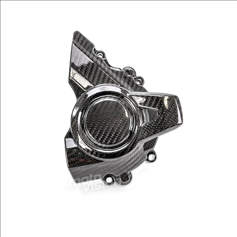 Carbon Sprocket cover Kawasaki Z900 2017-2021, delivered without screws or other fixings. The holes are already drilled on the carbon motorbike fairings. The parts are available in glossy or matt varnish.