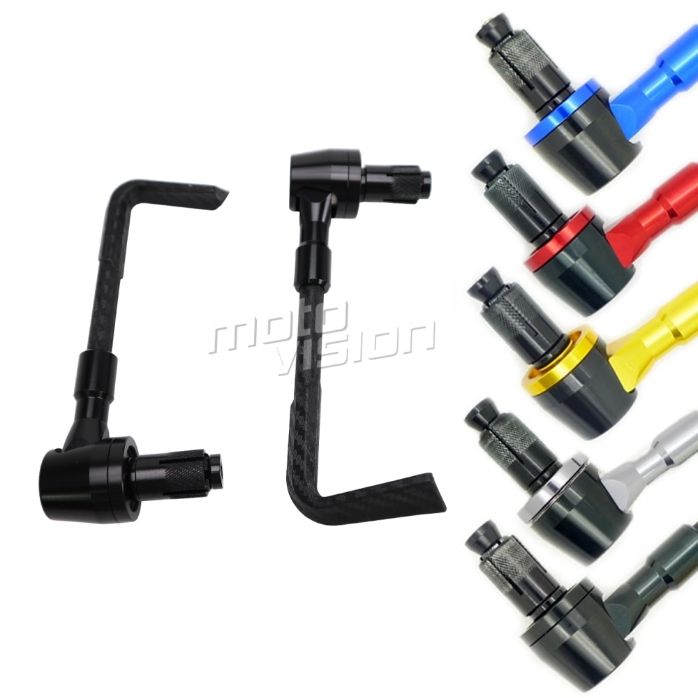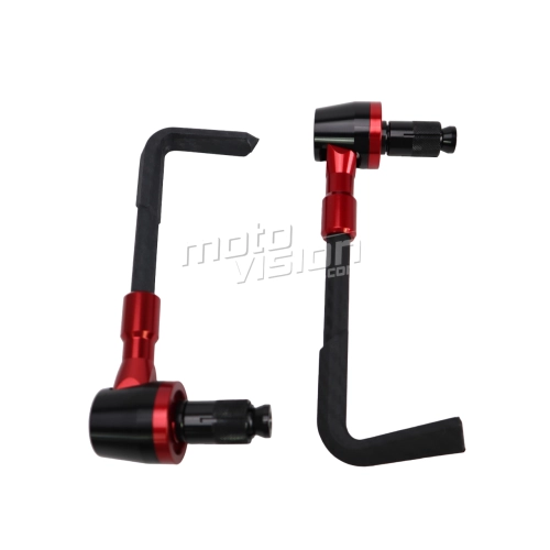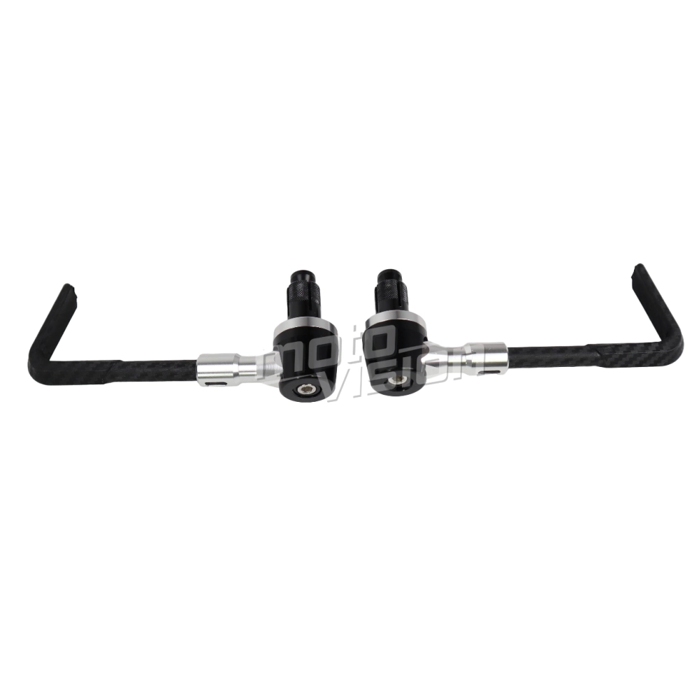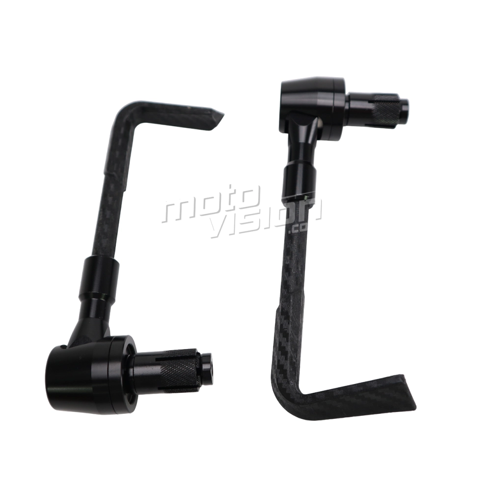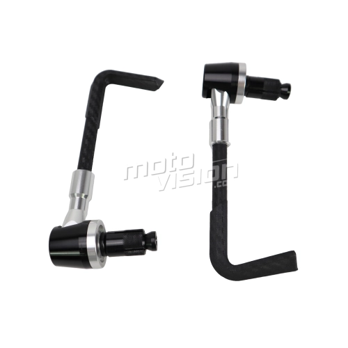 Protect your motorbike brake and clutch lever with this pair of universal aluminium brake and clutch lever protectors with an adjustable ABS part in imitation carbon. Easy to fit, you'll love the sporty design and adjustable length from 15 to 18 cm.