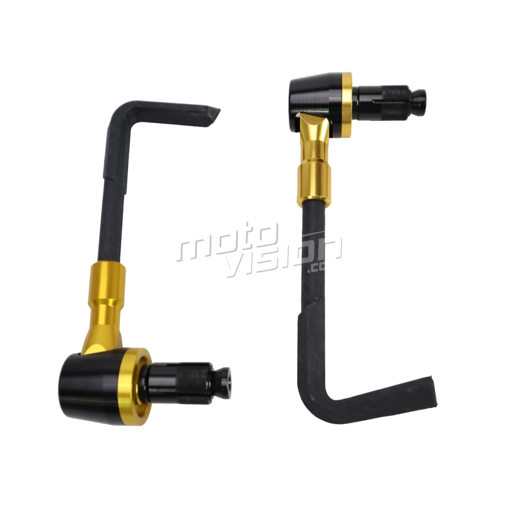 This pair of Model A universal brake and clutch lever protectors are designed to protect your levers in the event of a fall or unexpected contact. The FIM regulations for Moto GP and Superbike have recently imposed this device which, in the event of a side collision with another motorbike, prevents the front brake or clutch from being accidentally pinched, resulting in a high and dangerous risk of falling.