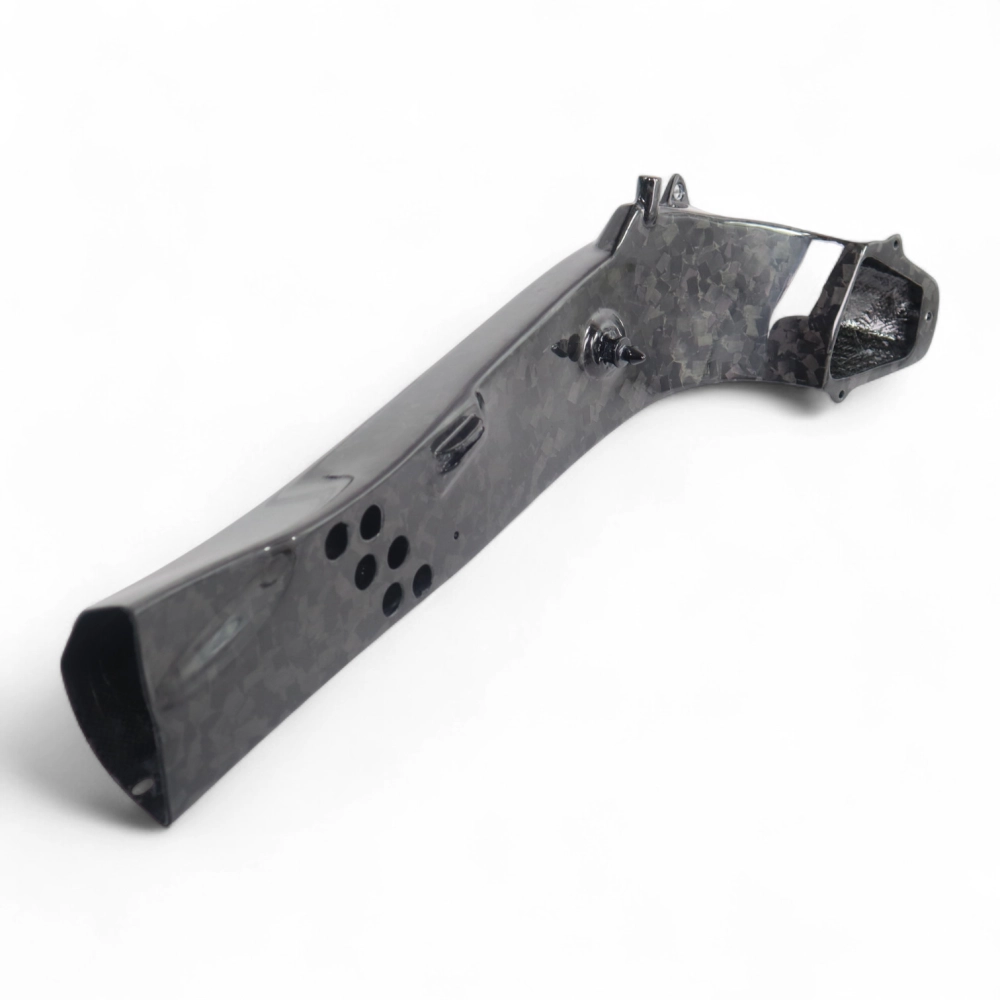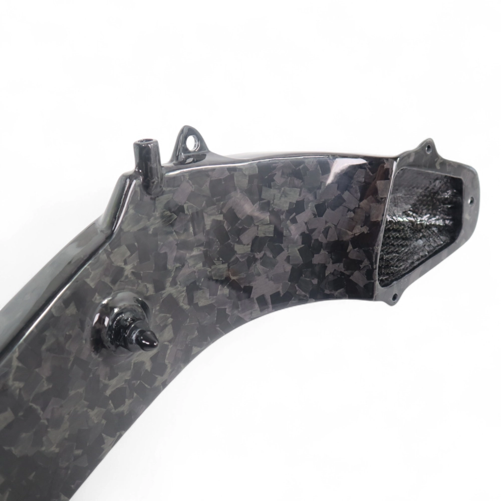 Air intake pipe carbon glossy Kawasaki Ninja H2 2015-, delivered without screws or other fixings. The holes are already drilled on the carbon motorbike fairings. The parts are available in glossy or matt varnish.