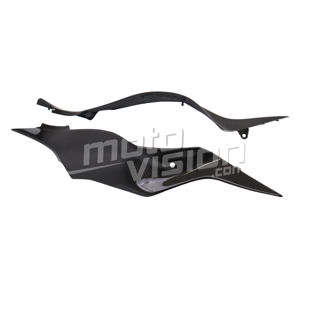 Tank Side Panels Carbon glossy Kawasaki ZX-6R 2019+ to be mounted directly on the original mounting points of your bike to replace the original fairing. The carbon parts are delivered without screws.