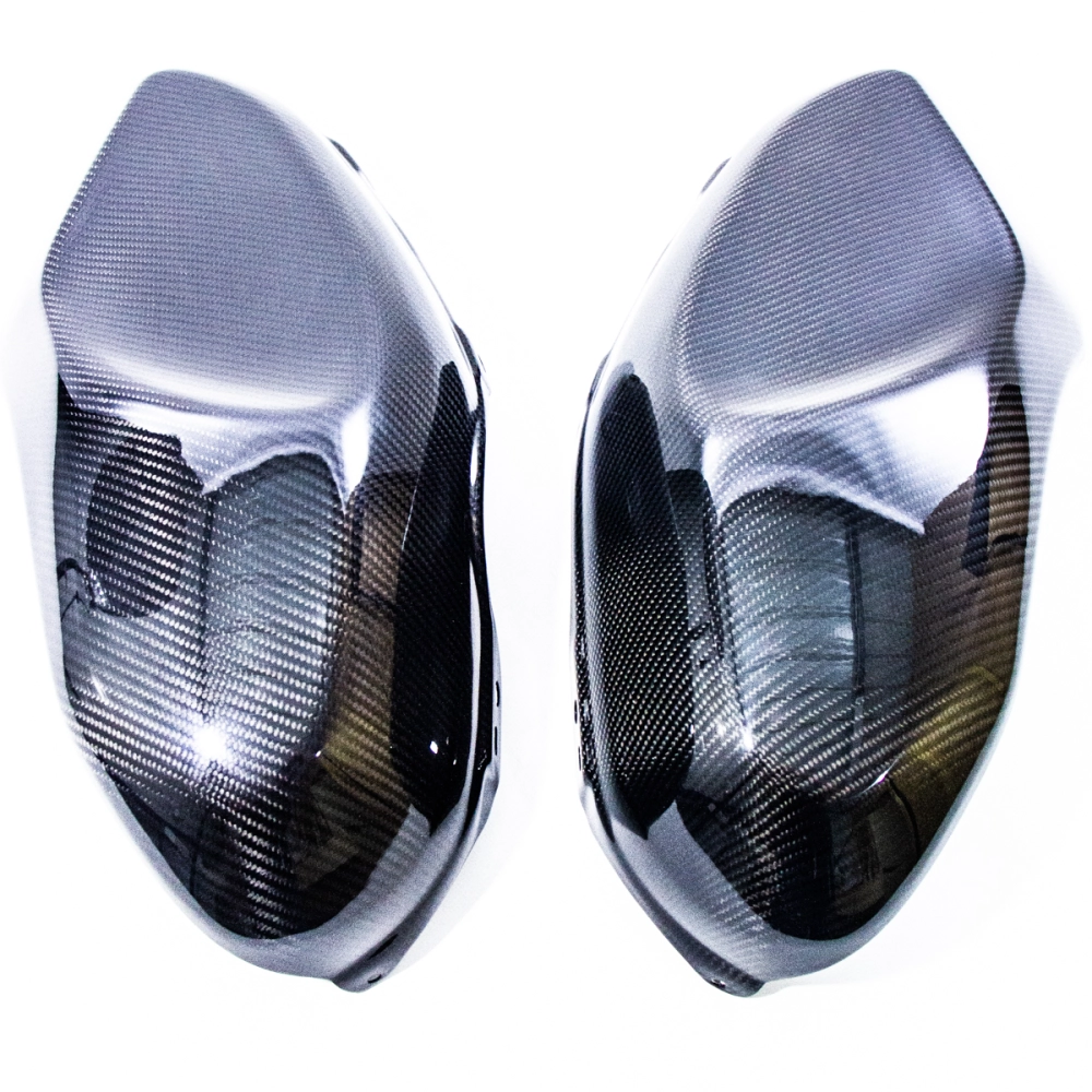 Side Tank Covers Carbon glossy Yamaha XSR 900, delivered without screws or other fixings. The holes are already drilled on the carbon motorbike fairings. The parts are available in glossy or matt varnish.