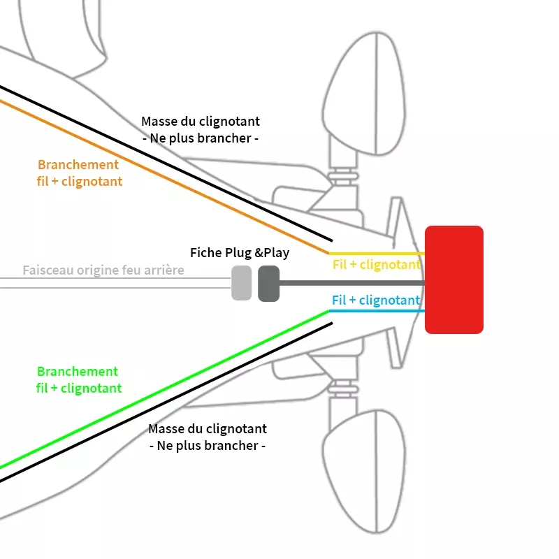 EU-approved light with the turn signals still in the original mounting. The integrated indicators are aesthetically pleasing but are not covered by the legislation. In order to keep the approval of the product, the distance for the rear indicator lights, between the inner edges of the two lighting areas, must be of a minimum size.
