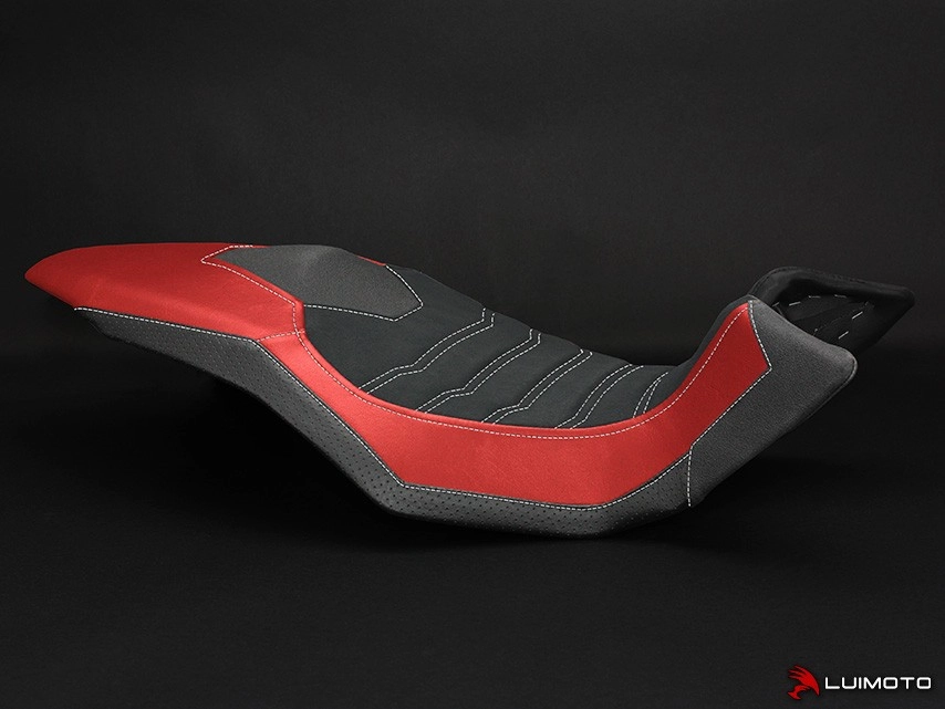 High quality Luimoto Seat cover MV Agusta Brutale 800 Dragster 2014-2018 made in Canada. The brand designs products with a superb finish: detailed embroidery, navy vinyl, carbon style fabric or high quality suede leather... The design and colours are customised to match the look of your bike.