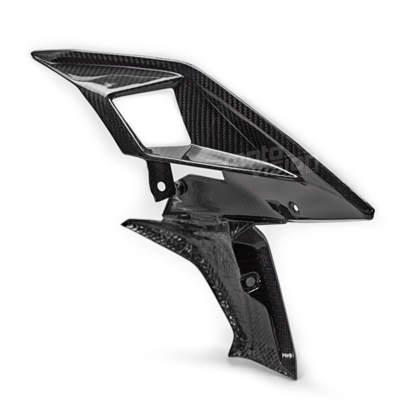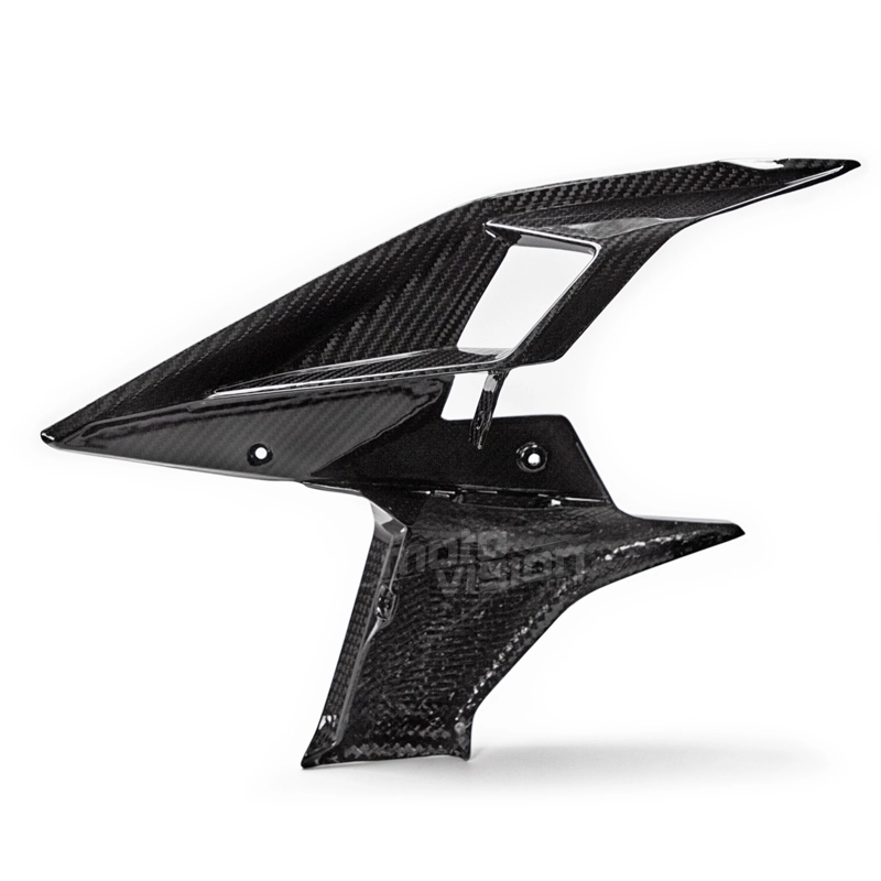 Side cover Carbone glossy KTM Superduke 1290 2017, delivered without screws or other fixings. The holes are already drilled on the carbon motorbike fairings. The parts are available in glossy or matt varnish.