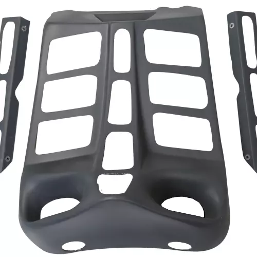 Give your Harley a unique look with this unpainted fiberglass radiator cover.