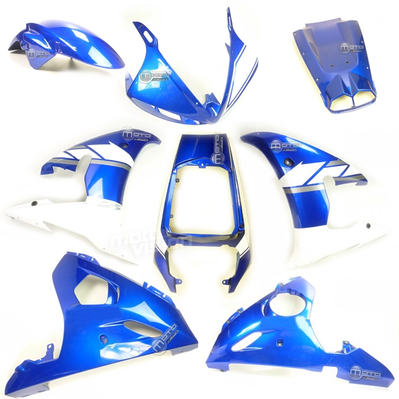 The kit of painted ABS fairing for Yamaha R6 2003-2005 is painted and decorated as shown on the pictures. It is delivered without screws and Windscreen.