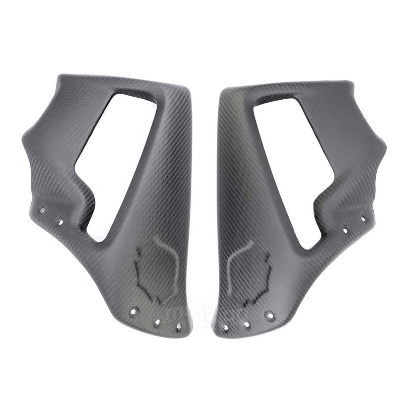 Carbon Side Panels varnish for Harley Davidson VRSCF V-Rod Muscle, delivered without screws or other fixings. The holes are already drilled on the carbon motorbike fairings. The parts are available in glossy or matt varnish.