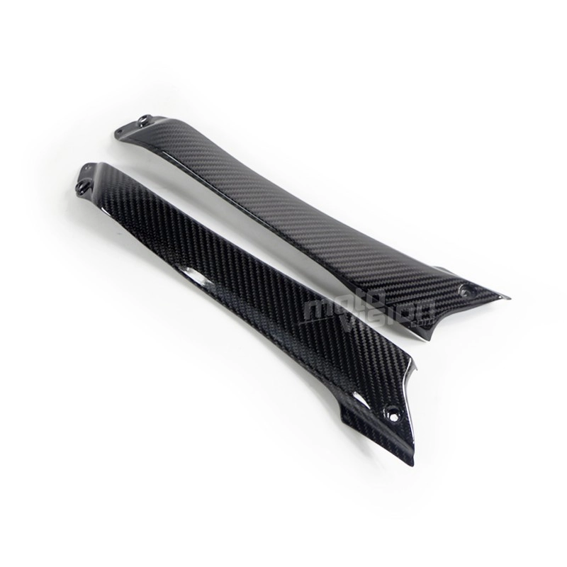 Carbon Side Panels varnish for Kawasaki H2, delivered without screws or other fixings. The holes are already drilled on the carbon motorbike fairings. The parts are available in glossy or matt varnish.