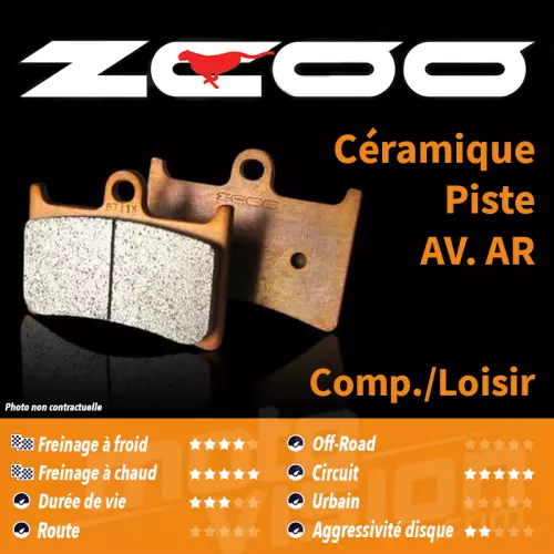 To meet all your expectations in terms of braking performance, ZCOO brake pads are available in 2 distinct ranges: EX (competition/leisure) and C (competition/endurance).