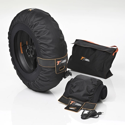 The Thermal Technology "Pro" pair of heated blankets is designed specifically for use on the track and is based on the motoGP tyre warmers: the outside is made from polyester fabric with cordura effect treatment, and the inside from Nomex fabric. The electrical circuit is arranged transversely along the side and longitudinally in the centre, guaranteeing a uniform temperature of 80°C throughout the tyre.