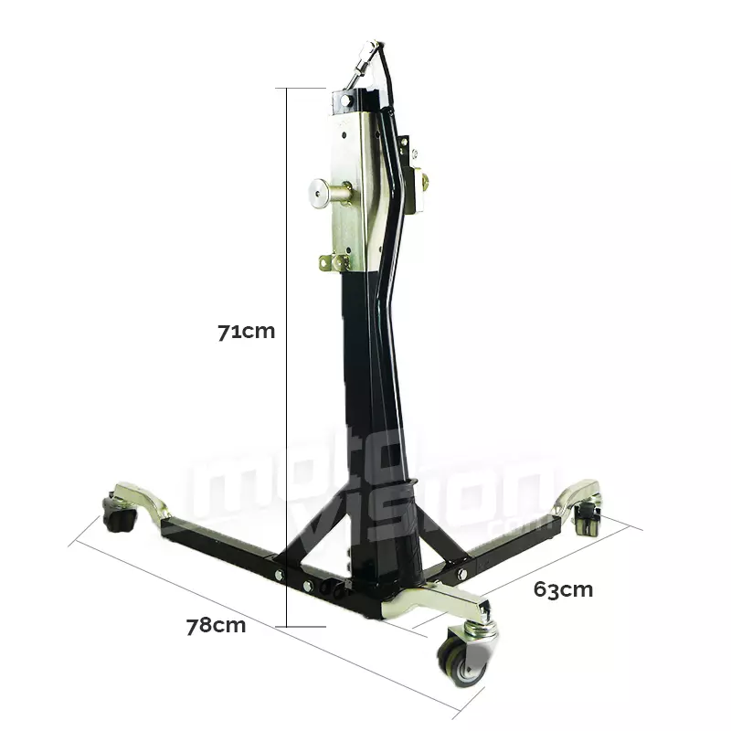 The Moto Vision centre stand is suitable for lifting both wheels up to 15 cm from the frame. It is suitable for vehicle models up to 300 kg - 661 lbs. The first time you install it you have to pay attention to the adjustment of your support, the next uses will be easy and fast.