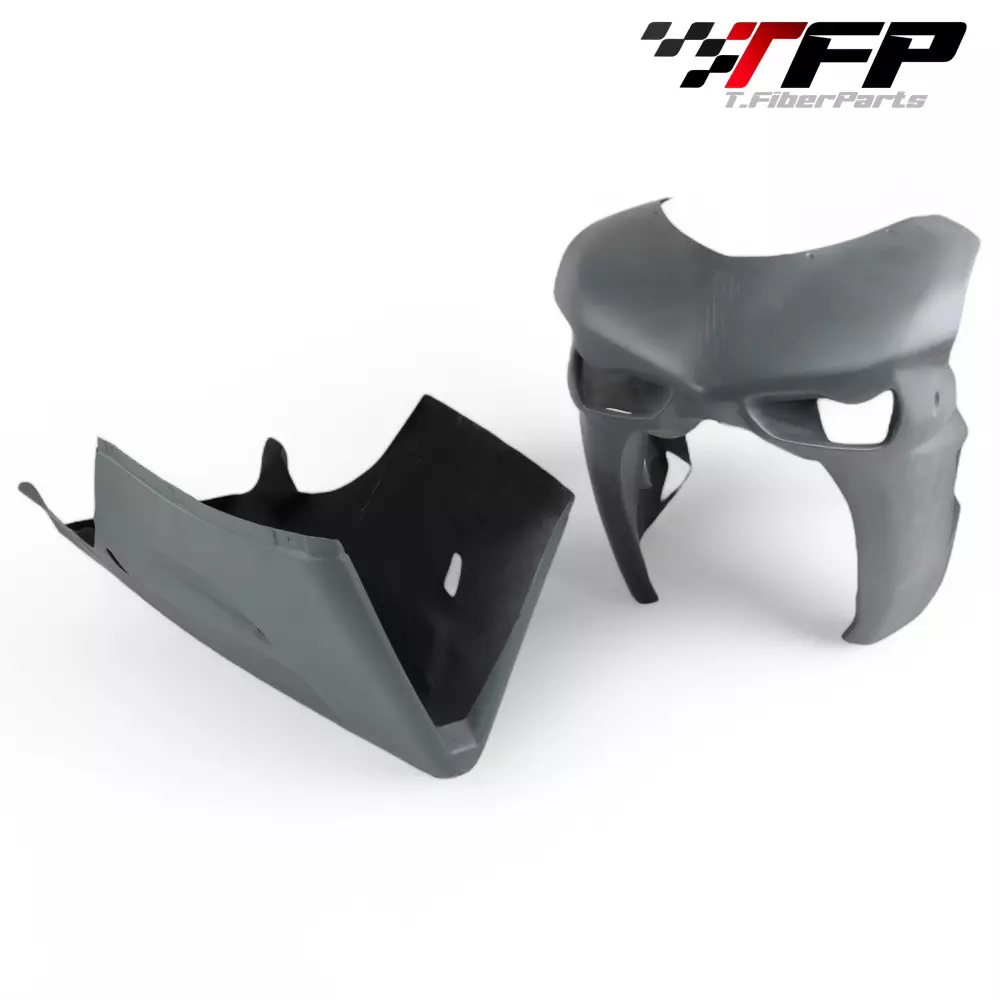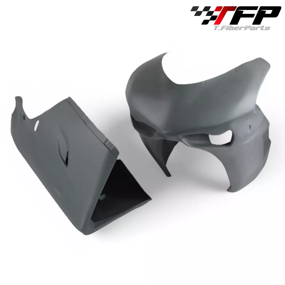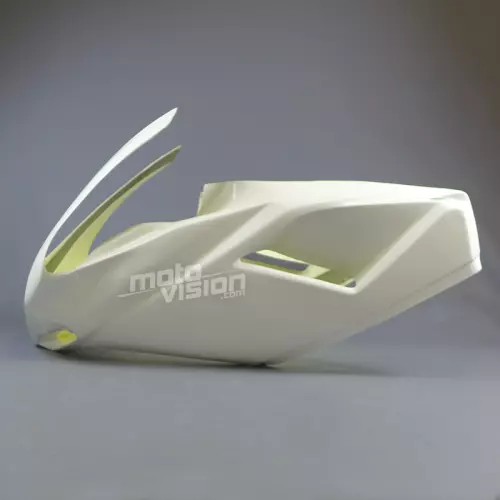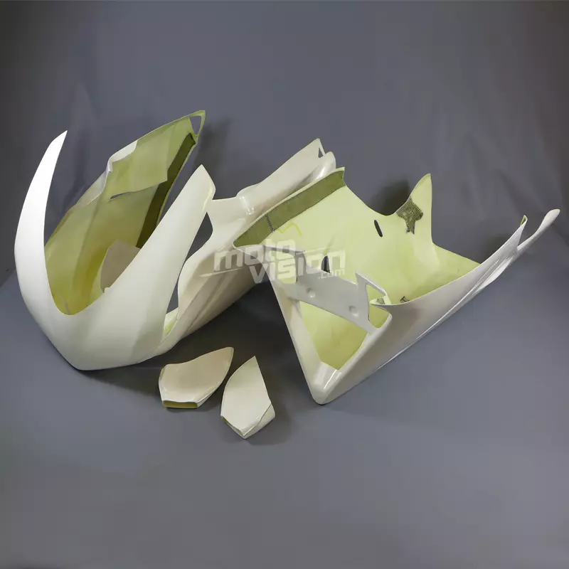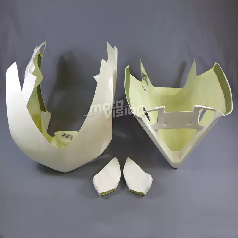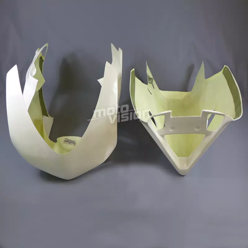 Front fairing kit complete with two layers of fiberglass mat and a last braided, 2 or 4 parts (see photos). Kevlar reinforcements at points of junctions and fixings.