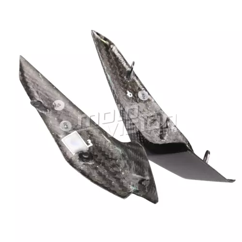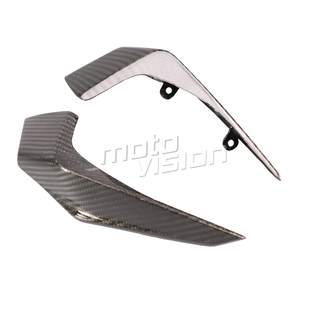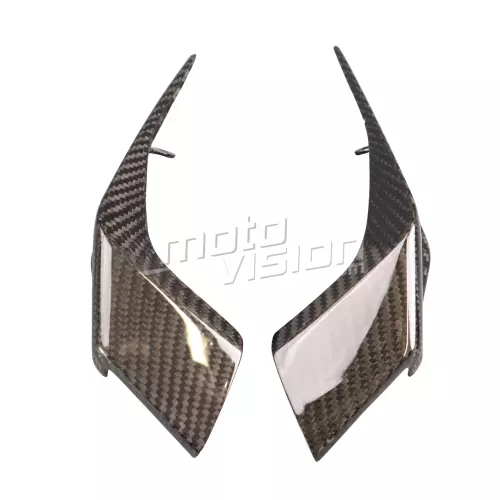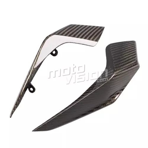 Headlight cover carbon KTM Duke 390, delivered without screws or other fixings. The holes are already drilled on the carbon motorbike fairings. The parts are available in glossy or matt varnish.