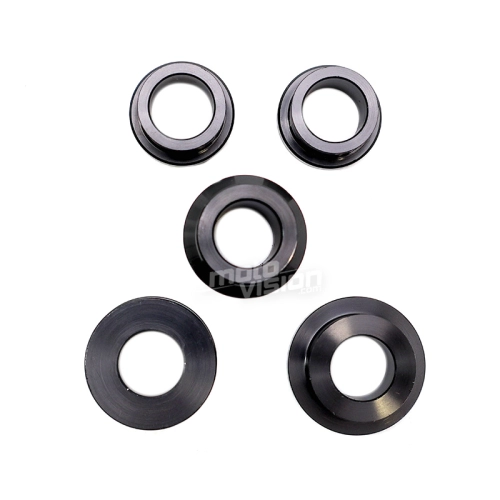 Wheel spacers for Kawasaki Ninja 400 2018-, made of aluminium. Aesthetically pleasing and practical, the pieces fit directly into the wheel's dust seal.