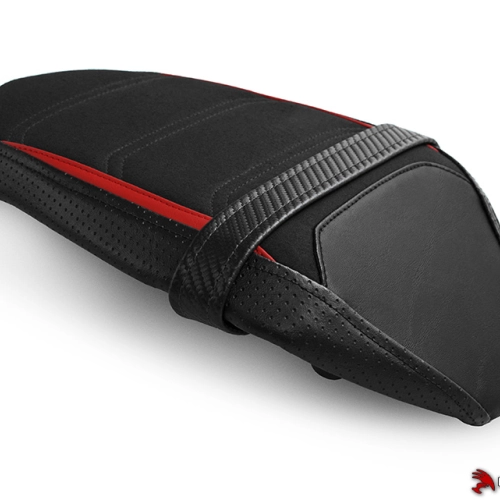 High quality Luimoto Seat cover Triumph Street Triple 765 R/S 2017-2019 made in Canada. The brand designs products with a superb finish: detailed embroidery, navy vinyl, carbon style fabric or high quality suede leather... The design and colours are customised to match the look of your bike.