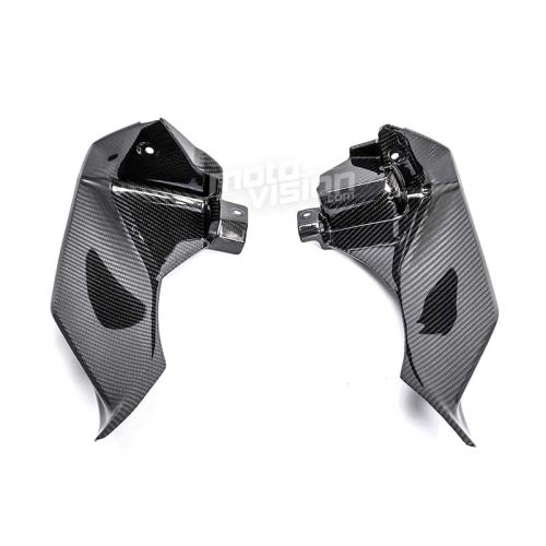 Dashpanel Side Cover carbon Yamaha R1M 2020-, delivered without screws or other fixings. The holes are already drilled on the carbon motorbike fairings. The parts are available in glossy or matt varnish.