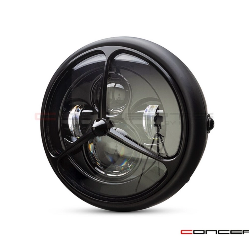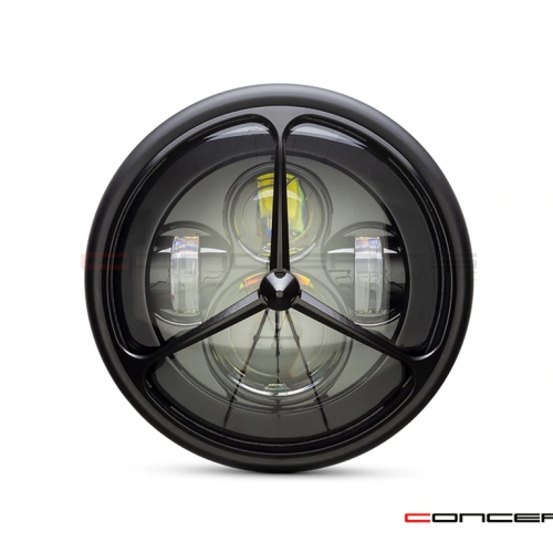 7.7" Matte Black + Contrast Multi Projector LED Headlight + Tri-Benz Grill Cover