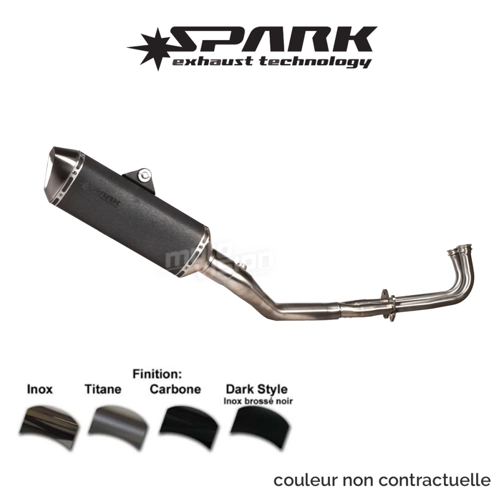 les lignes d'échappement SPARK sont conçues pour vous apportez un maximum de puissance et de gain de poids. elles ont été développé sur banc de puissance pour vous garantir un gage de qualité. Le silencieux « oval » est indémodable, il s'adapte à tous types de véhicule