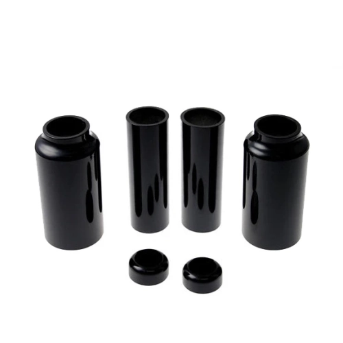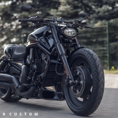 Perfect quality V-Rod Full fork Cover set made of CNC billet aluminium and gives your V-Rod that Fat fork look that you always wanted. Made to fit original and any aftermarket front fenders. Super gloss black powder coated excellent for your aggressive and custom V-Rod look.