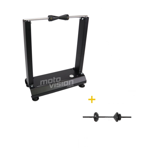 Place the wheel on the axle, and lock it with the cones. Now place the axle with the wheel on the support, and spin the wheel. The wheel will then stop by moving back and forth: the unbalance to be balanced is then at the bottom of the wheel. We must therefore place a lead on the opposite side. Repeat the operation until the wheel stops without moving back and forth, it's simple!