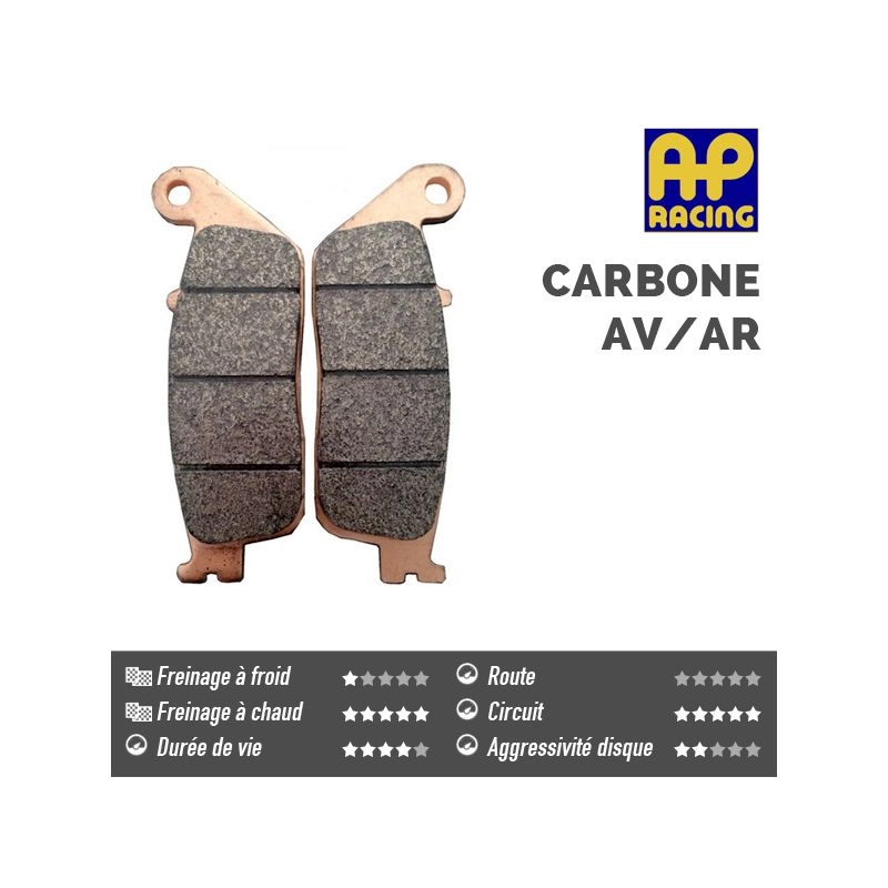 The English brand AP Racing is a specialist in high performance braking. Recognised by motorcyclists all over the world for its quality products, the AP Racing range of brake pads includes 5 types of materials and 15 pad shapes. It offers you complete satisfaction by being suitable for demanding track riders, as well as for road and off-road enthusiasts.