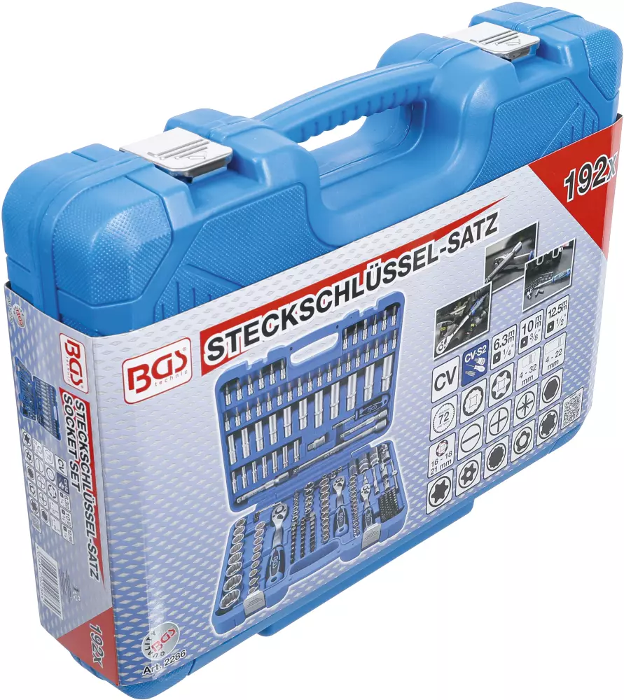 Socket Set 12-point 6.3 mm (1/4") / 10 mm (3/8") / 12.5 mm (1/2") 192 pcs. BGS