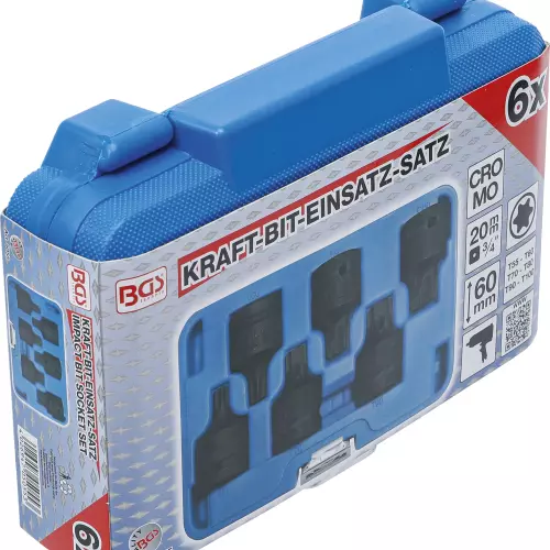 - Impact bit sockets, 20 mm (3/4") drive, T-Star (for Torx): T60