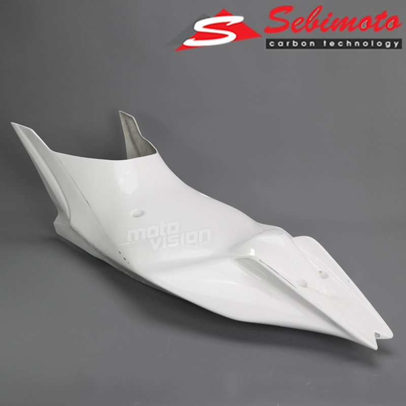 Fiberglass race seat Sebimoto Aprilia RS660 2020-2024 in braided fiberglass with kevlar reinforcements, shell for use with foam seat with removal of the original seat. The product is easily mounted on your motorbike thanks to the marking of the drilling locations and a good finish of the fairing.