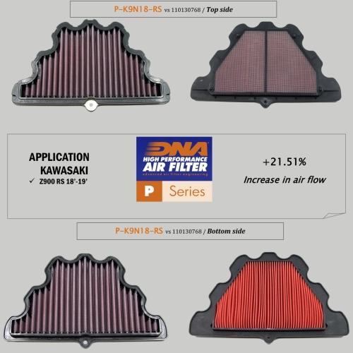 DNA air filters offer many advantages such as optimised airflow, perfect adaptation to engine requirements and excellent air/fuel emulsion. DNA products also help to improve acceleration and give the engine better revs. They also help reduce fuel consumption and protect the engine better thanks to extreme filtration.
