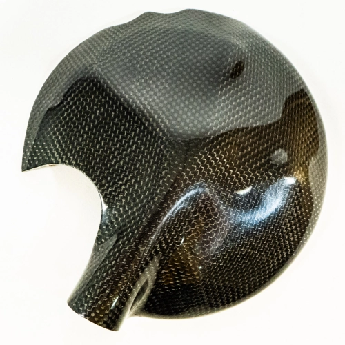 Clutch cover Carbone Sebimoto Kawasaki ZX10R 2008 2010 in braided fiberglass with kevlar reinforcements. The product is easily mounted on your motorbike thanks to the marking of the drilling locations and a good finish of the fairing.