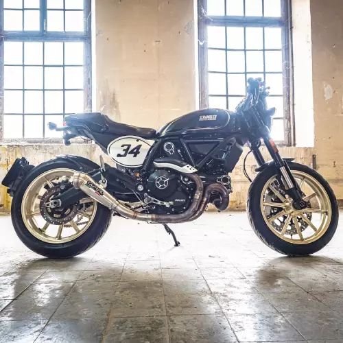 Specialising in titanium and steel, Italian brand GPR Exhaust System can equip your Ducati Scrambler 800 2017 - 2020 with the Powercone Evo, a homologated slip-on exhaust including removable DB Killer, link pipe and catalyst.