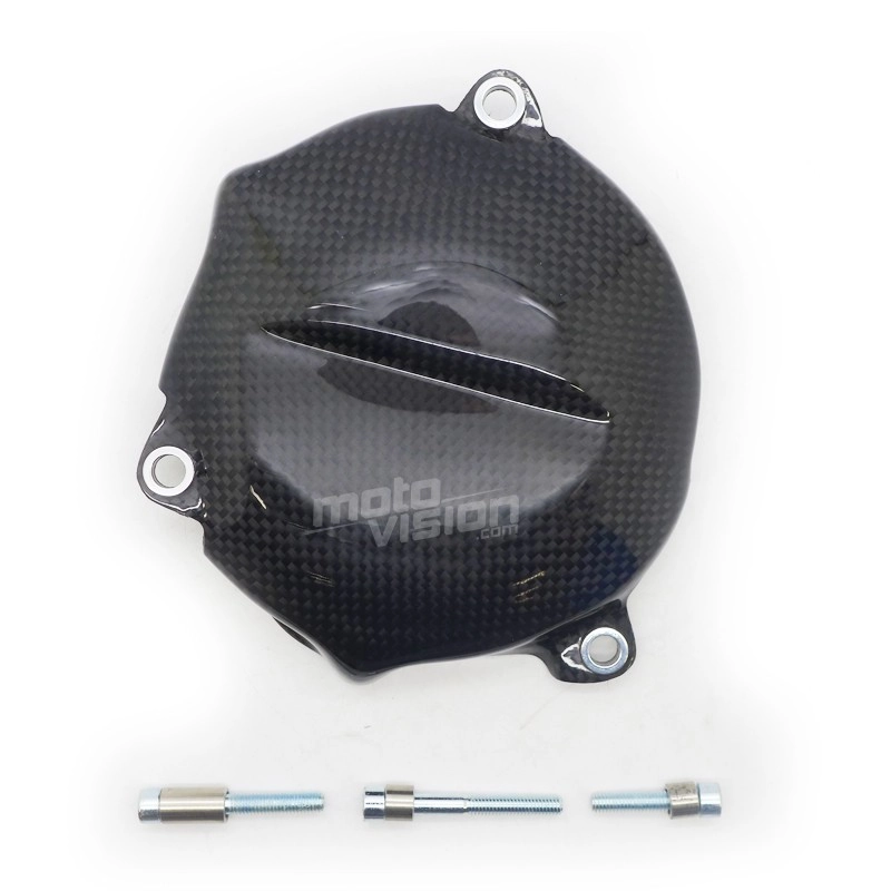 Parts in real carbon with an outside layer of carbon and four internal layers in Kevlar, varnish finish.