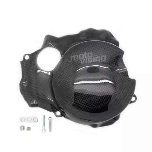 Parts in real carbon with an outside layer of carbon and four internal layers in Kevlar, varnish finish.